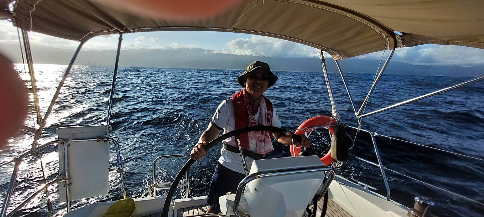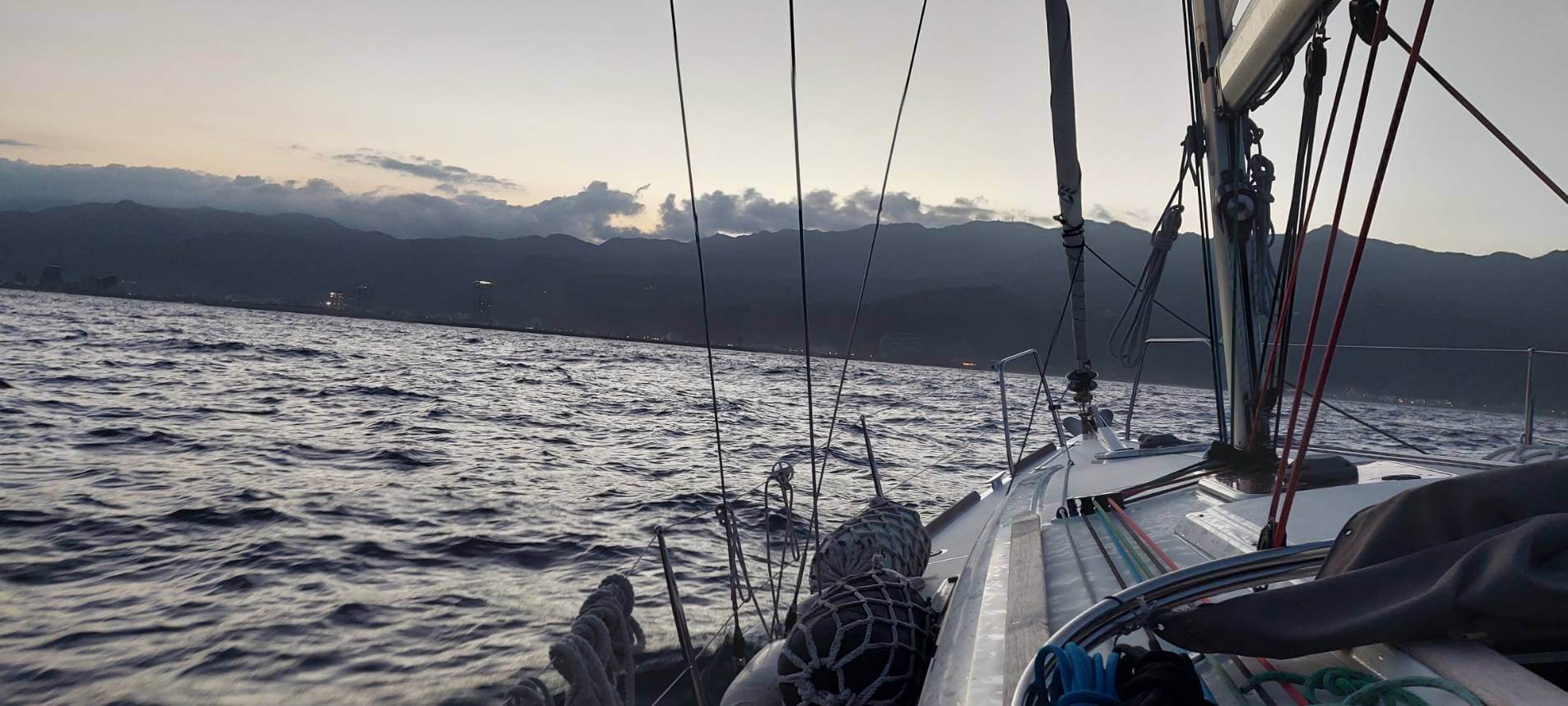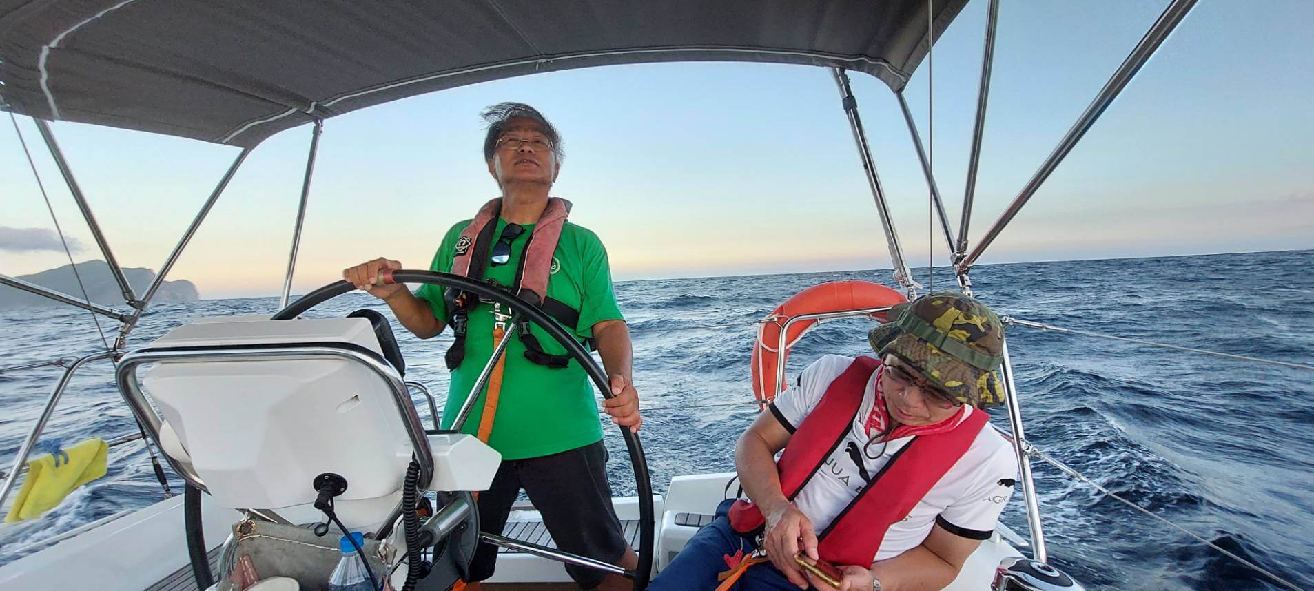 8/19下午4:13,我們自烏石港啟航,遭遇到3-4浪,11-28節風,為顧慮會員夜航安全,放棄繼續航行,7:00返回烏石港。